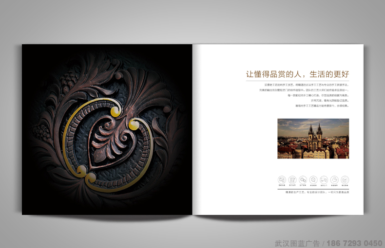 產品畫冊設計解決方案:整本產品畫冊的設計以深咖啡色為主色調,金色為輔助色,封面為深咖啡色,LOOG及Slogan采用燙金工藝,壓粗布紋顯得簡潔而有質感,畫冊采用280x280mm的正方形設計。由于眾泰金屬位于云南省,在此本產品畫冊的設計過程中,均為在線上交流溝通,在畫冊設計定稿后交由印刷廠制作,畫冊印刷完后通過物流的形式,將畫冊的成品送到遠在千里之外的云南客戶手中。距離不是問題,服務才是真理,圖藍廣告公司專注于畫冊的設計與印刷服務,您只需要將畫冊設計的訴求告知我們,在后期的設計、印刷過程中,讓您全程無憂。